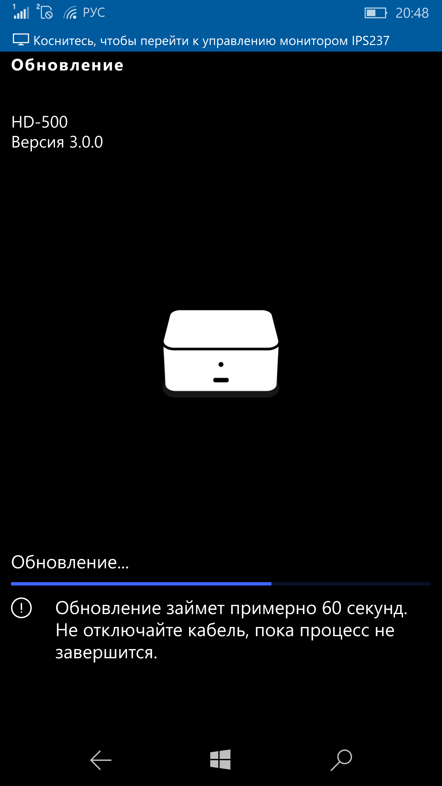 Отметим, что без внешнего питания устройство не работает. Так что минимально в него нужно будет подключать три кабеля — питание, телефон и монитор. Впрочем, можно попробовать спрятать док за монитором, так что на столе будет только кабель для телефона. Устройство имеет собственную прошивку, которая обновляется через смартфон.
