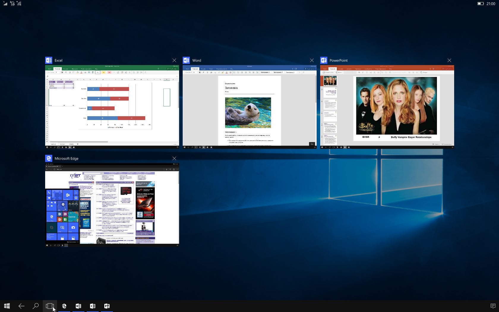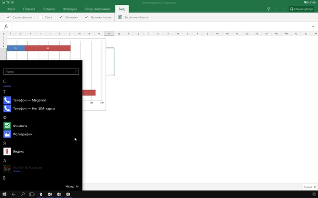 Заметим, что приложения, по крайней мере, в текущей реализации, работают только на полном экране. Вы не можете уменьшить размер окна программы и видеть сразу два приложения. Но переключаться через значки на панели задач можно достаточно быстро. Кроме того, сложно назвать адаптацию эффективной. Например, в «мобильном» Word нет режима редактирования без форматирования страницы. Так что на стандартном мониторе все или очень крупно или есть большие пустые поля.