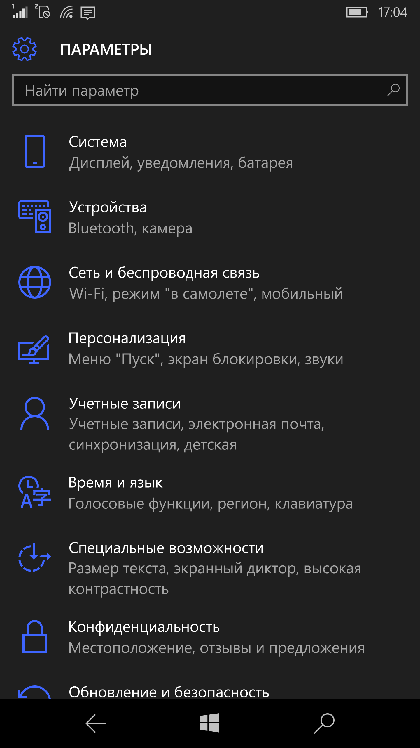- Операционная система Microsoft Windows 10 Mobile