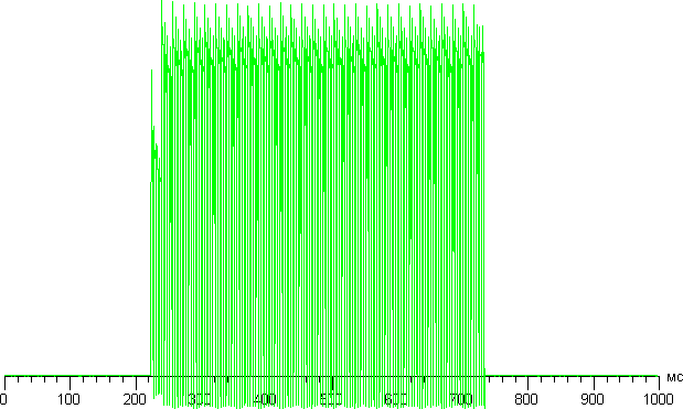 При выводе белого поля во весь экран и при ручном управлении яркостью ее максимальное значение составило 290 кд/м², минимальное — 7 кд/м². Также нужно учитывать тот факт, что в данном случае чем меньше площадь белого на экране, тем он светлее, то есть фактическая максимальная яркость белых участков будет всегда выше указанного значения. Например, при выводе белого на половине экрана и черного на второй половине максимальная яркость при ручной регулировке повышается до 320 кд/м². Впрочем, это все равно не очень много, поэтому, даже учитывая хорошие антибликовые свойства, читаемость днем на солнце будет на пограничном уровне. Работает автоматическая регулировка яркости по датчику освещенности (он расположен справа от прорези фронтального громкоговорителя). В работу этой функции можно внести корректировки, передвигая ползунок настройки яркости. Далее для трех условий приведем значения яркости экрана для трех значений этой настройки — для 0%, 50% и 100%. В полной темноте в автоматическом режиме яркость уменьшается до 6, 11 и 21 кд/м² соответственно (нормально), в условиях освещенного искусственным светом офиса (примерно 400 лк) яркость устанавливается на 50, 160 и 280 кд/м² (темновато — в самый раз — ярковато, что соответствует заданной коррекции), в ярко освещенном окружении (соответствует освещению ясным днем вне помещения, но без прямого солнечного света — 20000 лк или немного больше) — повышается до 330 кд/м² независимо от положения ползунка. Это значение немного больше максимума при ручной регулировке. В целом результат работы функции автоматической регулировки яркости соответствует ожидаемому. На любом уровне яркости присутствует значимая модуляция с частотой примерно 243 Гц. На рисунке ниже приведены зависимости яркости (вертикальная ось) от времени (горизонтальная ось) для нескольких значений настройки яркости: