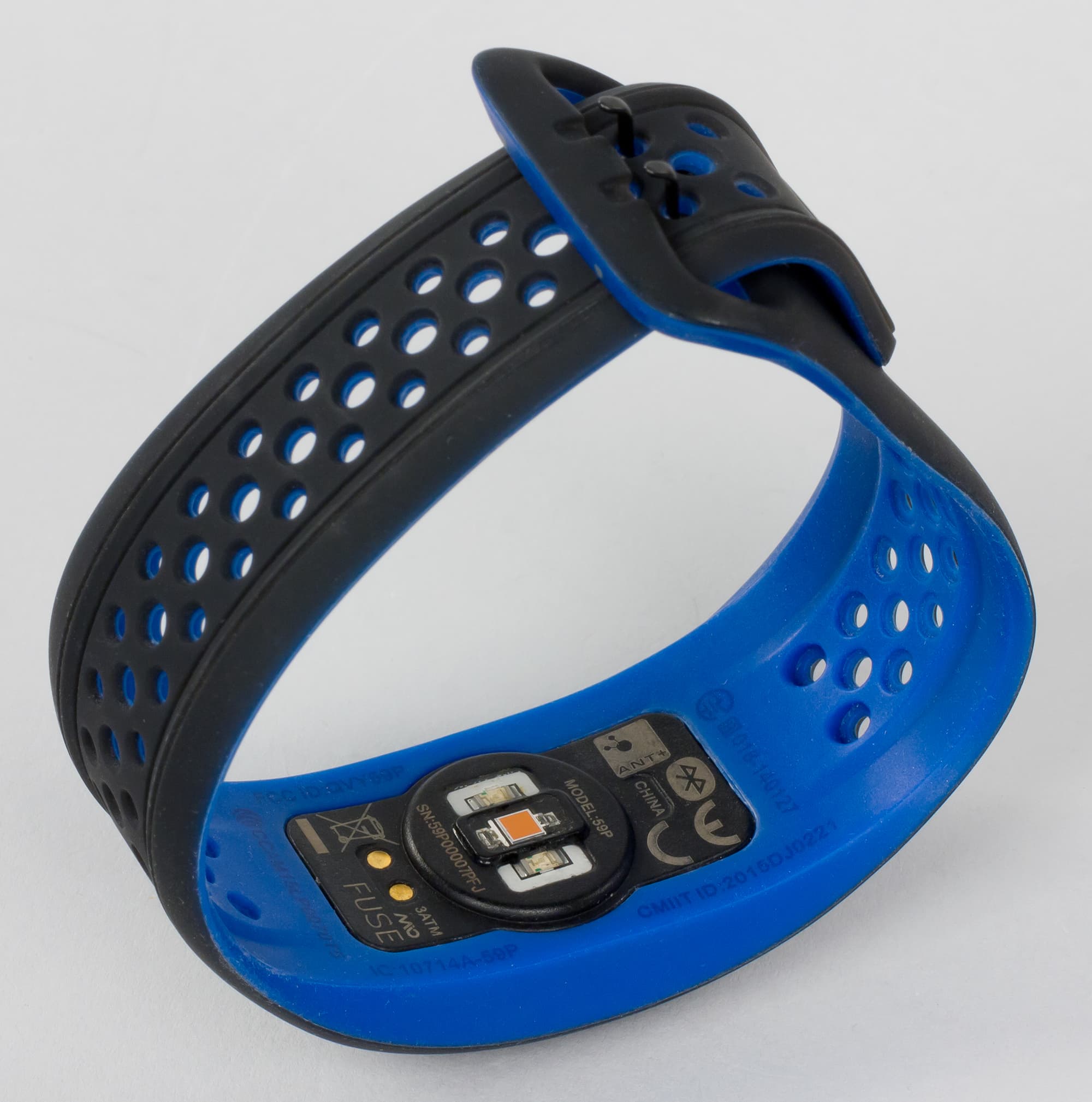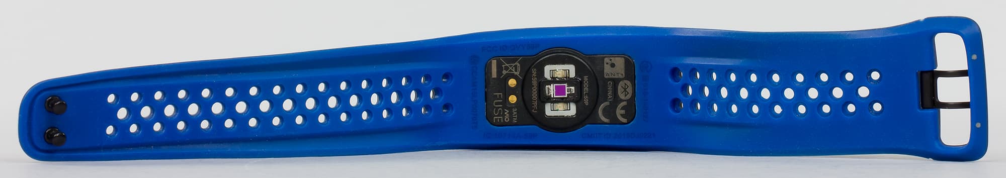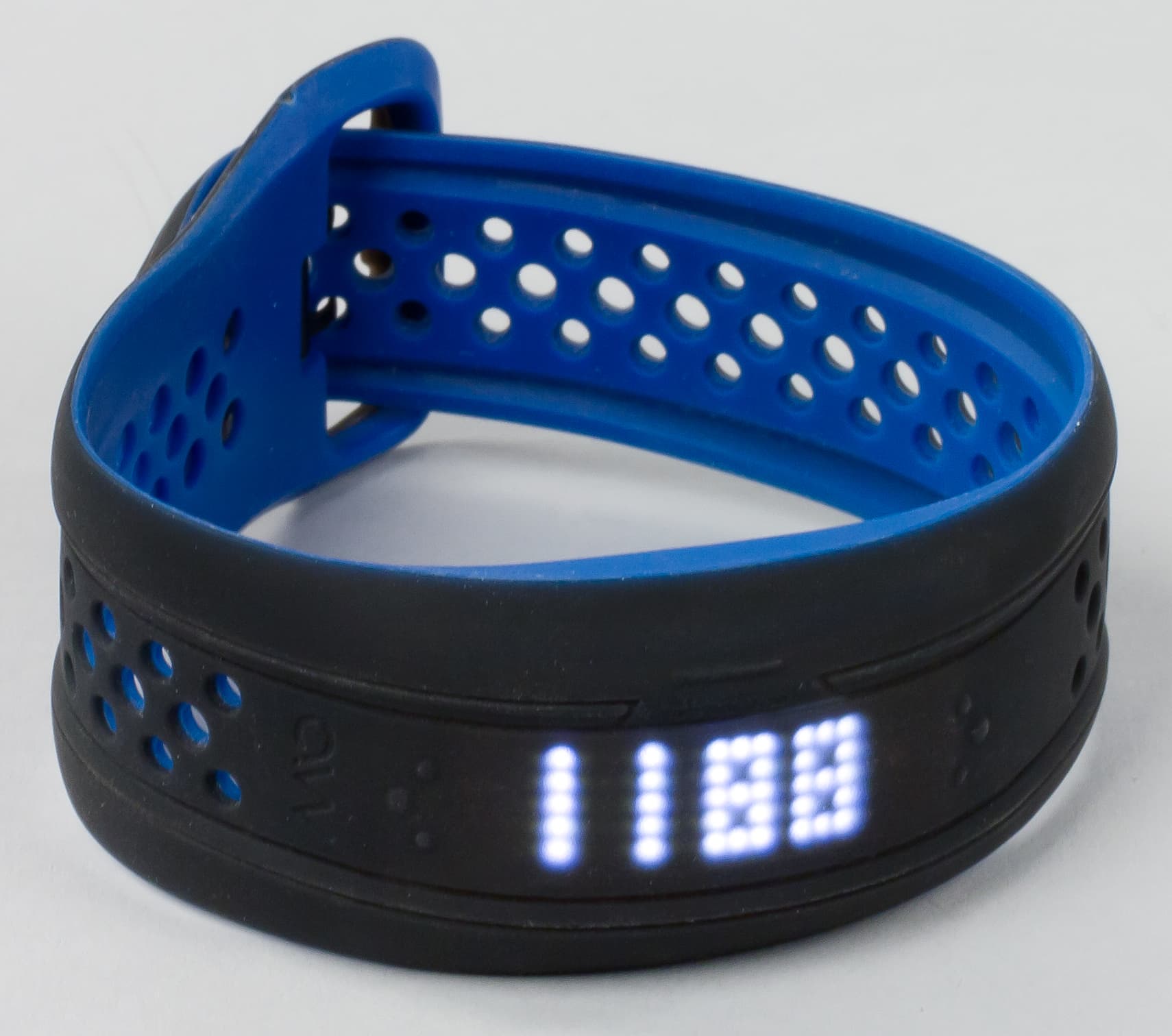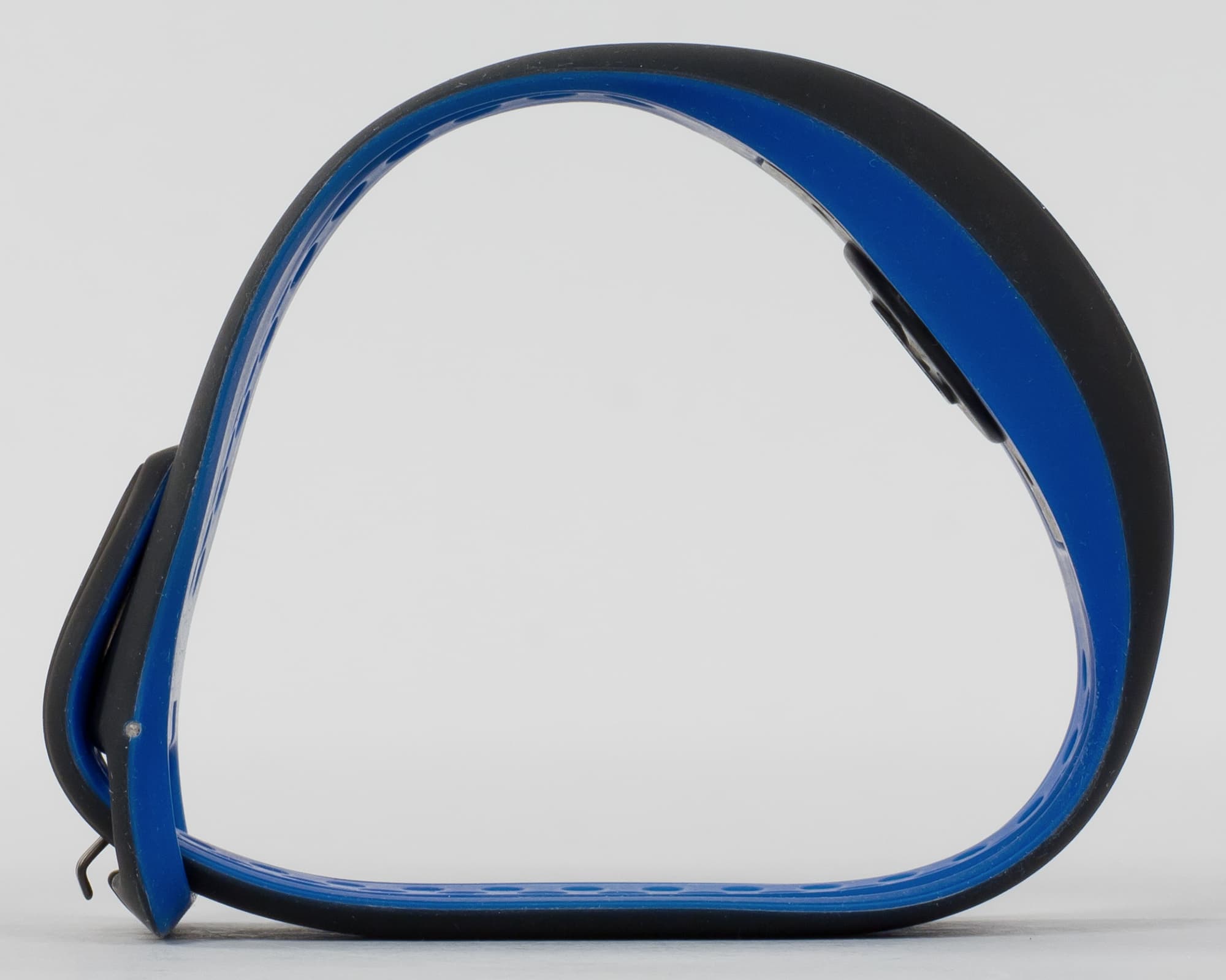 Браслет продается в цветовых модификациях Cobalt (синий с внутренней стороны, черный — снаружи), Aqua (цвета морской волны внутри и черный снаружи) и Crimson (малиновый внутри, черный снаружи). У нас на тестировании был вариант Cobalt. Честно говоря, решение кастомизировать цвет только внутренней стороны кажется странным, ведь он почти не виден. Но, впрочем, на гранях устройства синий (в нашем случае) заметен даже тогда, когда браслет надет.