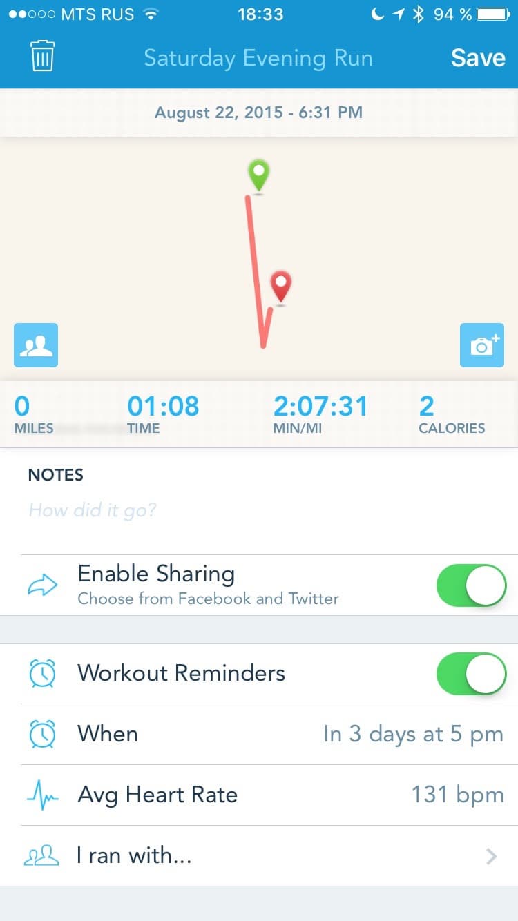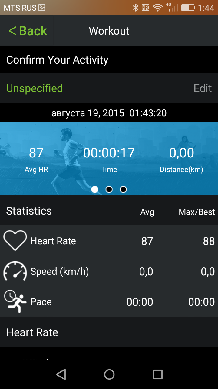 После этого во время пробежки у вас будет отображаться на экране смартфона ваш текущий пульс с указанием зоны, а по окончании — средний пульс за пробежку.