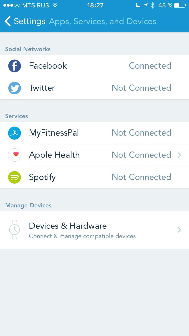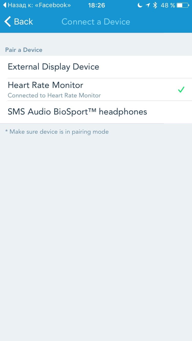 Мы решили проверить это на примере iOS-приложения Runtastic и GPS-часов Garmin Fenix 3. Важно, что приложение Mio Fuse при этом вовсе не требуется запускать, никоим образом в этом процессе оно не участвует. В случае с Runtastic просто открываем настройки приложения, выбираем пункт Devices & Hardware, в открывшемся списке нажимаем на Heart Rate Monitor. За несколько секунд приложение подключится к Mio Fuse (впрочем, нигде не отобразив его название или какие-то параметры). При этом, на Mio Fuse должен быть запущен режим измерения пульса, а на смартфоне включен Bluetooth, так как соединение происходит по Bluetooth.