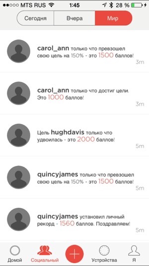 Помимо вышеперечисленного в приложении есть также и социальные функции: можно посмотреть достижения других пользователей, добавить их в друзья и соревноваться с ними.