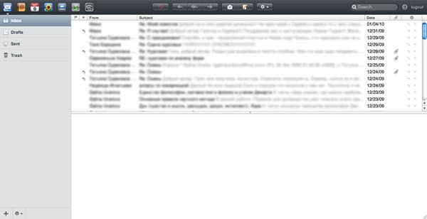 Но — вернемся к MobileMe. Итак, мы создали логин, и теперь можем пользоваться новой почтой и другими приложениями на me.com. Главное окно сервиса (оно же — Mail) выглядит следующим образом.
