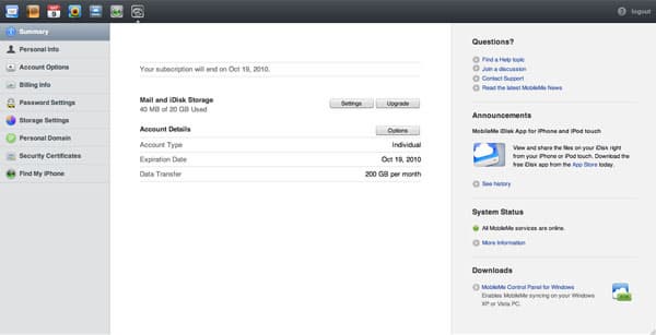 «А можно ли использовать уже имеющуюся почту или не заводить мэйл вообще?» — появляется логичный вопрос. Ответ: нет, нельзя. MobileMe — это обязательно новая почта, и обязательно на me.com. Исключение сделано лишь для обладателей мэйлов @mac.com, так как сервисы .Mac — прямой предшественник MobileMe. Однако, насколько удобно происходит миграция с .Mac на MobileMe — сказать вам не могу, поскольку подписчиком .Mac не был, а сейчас сервис уже не существует, так как ему на смену пришел MobileMe.