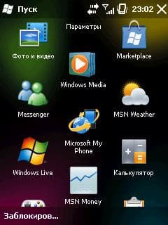 Не меньшим плюсом является и то, что в устройствах на базе Windows Mobile 6.5 My Phone уже установлен. Чтобы его запустить, надо зайти в меню Пуск (его можно запустить нажатием на клавишу Windows, которая должна быть, если модель телефона соответствует стандартам Windows Phone). В меню Пуск выбираем иконку My Phone, далее вам будет предложено принять всякие лицензионные соглашения / предупреждения, после чего — можно вводить Windows Live ID.