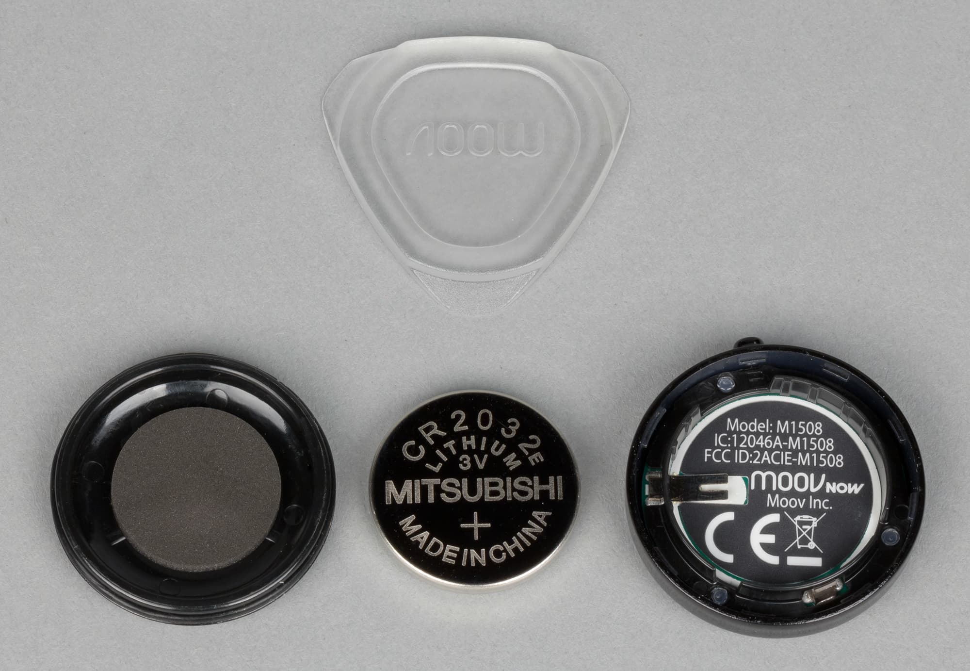 В отличие от комплектации первого Moov, здесь нет никаких зарядных блоков, поскольку Moov Now работает от батареи «таблетки». А вот запасную батарейку могли бы и положить.