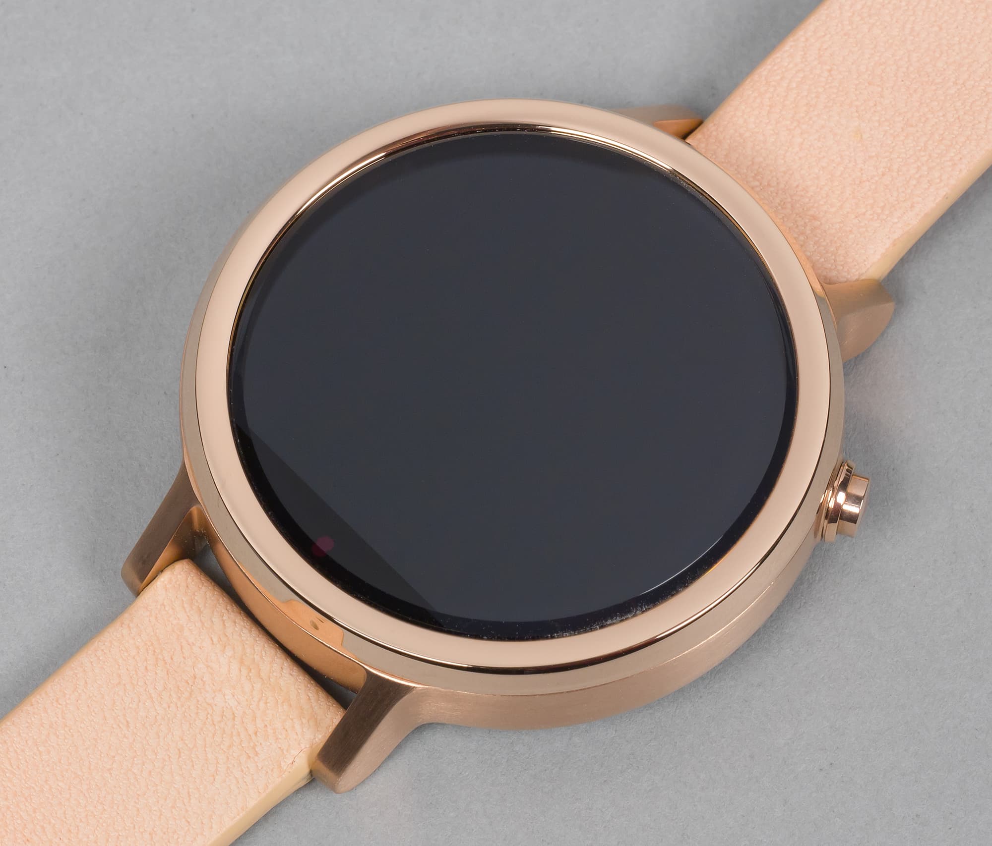 Внешний вид женской модели производит неоднозначное впечатление. Небольшой диаметр (часы полностью круглые) — это, конечно, плюс. Все-таки первые Moto 360 были великоваты. Но корпус по-прежнему толстый, а ремешок здесь очень узкий. Получается некоторый дисбаланс.