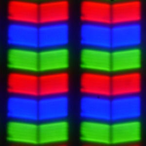 В итоге цвета имеют естественную насыщенность. В данном устройстве используется матрица типа IPS. Микрофотографии демонстрируют типичную для IPS структуру субпикселей: