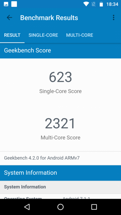| GeekBench (v4.x) (больше — лучше) | 623/2321 | 882/4355 | 859/4133 | 757/2071 | 904/3513 |