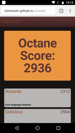 | Google Octane 2 (больше — лучше) | 2936 | 4627 | 3723 | 4489 | 3928 |