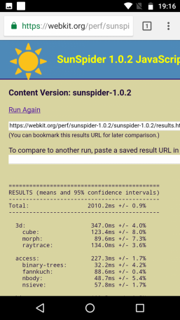 Что касается бенчмарков для оценки скорости движка javascript, то стоит всегда делать скидку на то, что в них результаты существенно зависят от браузера, в котором запускаются, так что сравнение может быть истинно корректным только на одинаковых ОС и браузерах, а такая возможность имеется при тестировании не всегда. В случае с ОС Android мы всегда стараемся использовать Google Chrome.