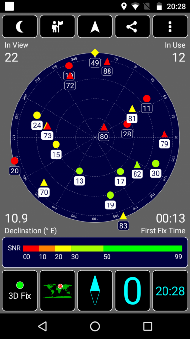 Навигационный модуль работает и с GPS (с A-GPS), и с отечественной Глонасс, но без китайской Beidou. Первые спутники при холодном старте обнаруживаются в течение первой минуты. Магнитный компас, необходимый для навигационных программ, в аппарате, к сожалению, отсутствует.