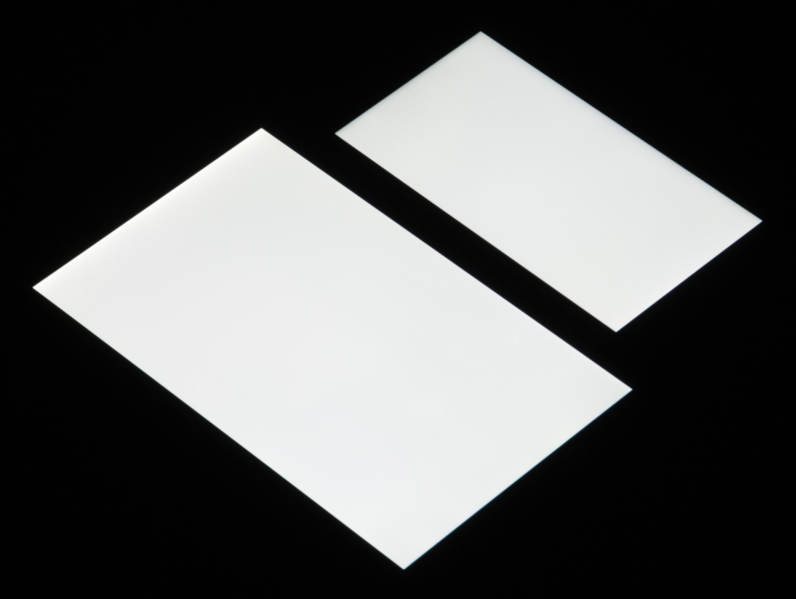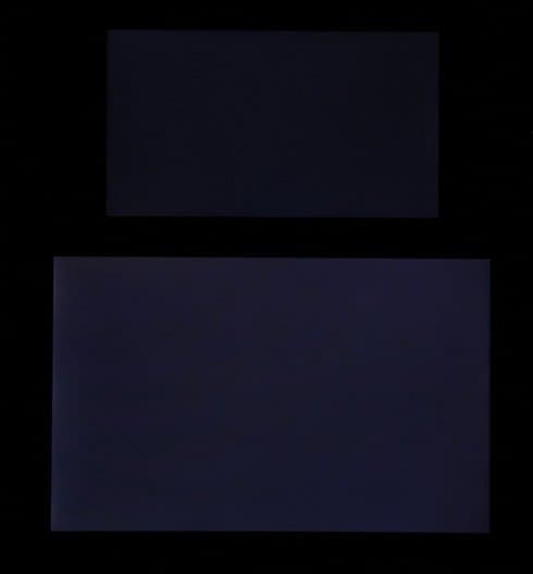 Яркость под углом у экранов уменьшилась (как минимум в 5 раз, исходя из разницы в выдержке), но в случае Moto G5S снижение яркости чуть больше. Черное поле при отклонении по диагонали высветляется сильно и приобретает зеленоватый оттенок. Фотографии ниже это демонстрируют (яркость белых участков в перпендикулярном плоскости экранов направлении одинаковая!):