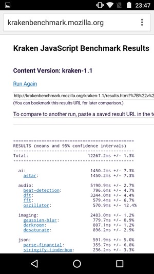 Что касается бенчмарков для оценки скорости движка javascript, то стоит всегда делать скидку на то, что в них результаты существенно зависят от браузера, в котором запускаются, так что сравнение может быть истинно корректным только на одинаковых ОС и браузерах, а такая возможность имеется при тестировании не всегда. В случае с ОС Android мы всегда стараемся использовать Google Chrome.