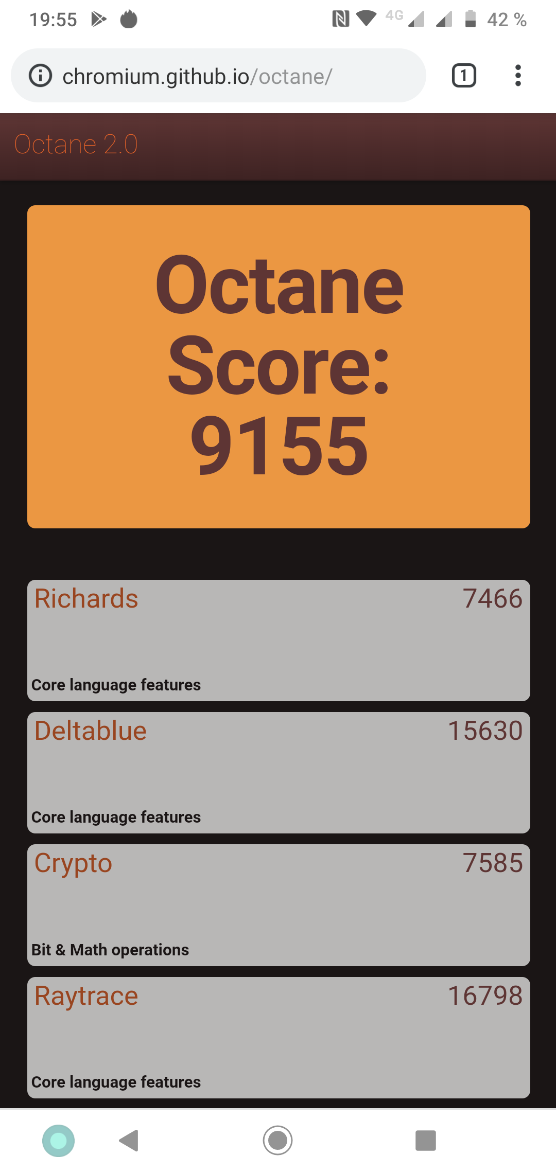 Что касается бенчмарков для оценки скорости движка javascript, то стоит всегда делать скидку на то, что в них результаты существенно зависят от браузера, в котором запускаются, так что сравнение может быть истинно корректным только на одинаковых ОС и браузерах, а такая возможность имеется при тестировании не всегда. В случае с ОС Android мы всегда стараемся использовать Google Chrome.