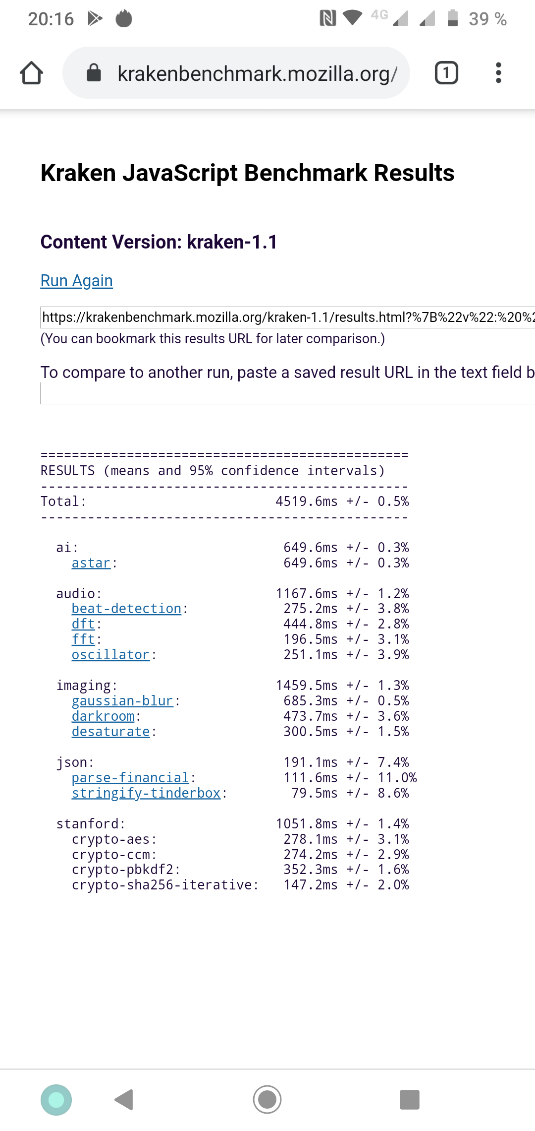 | Mozilla Kraken (мс, меньше — лучше) | 4520 | 4573 | 2957 | 4091 | 5267 |