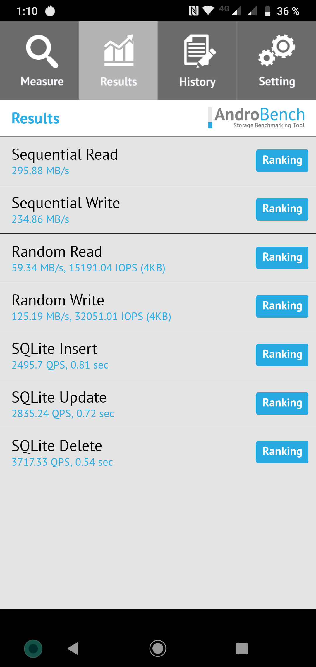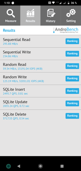 Результаты теста AndroBench на скорость работы с памятью:
