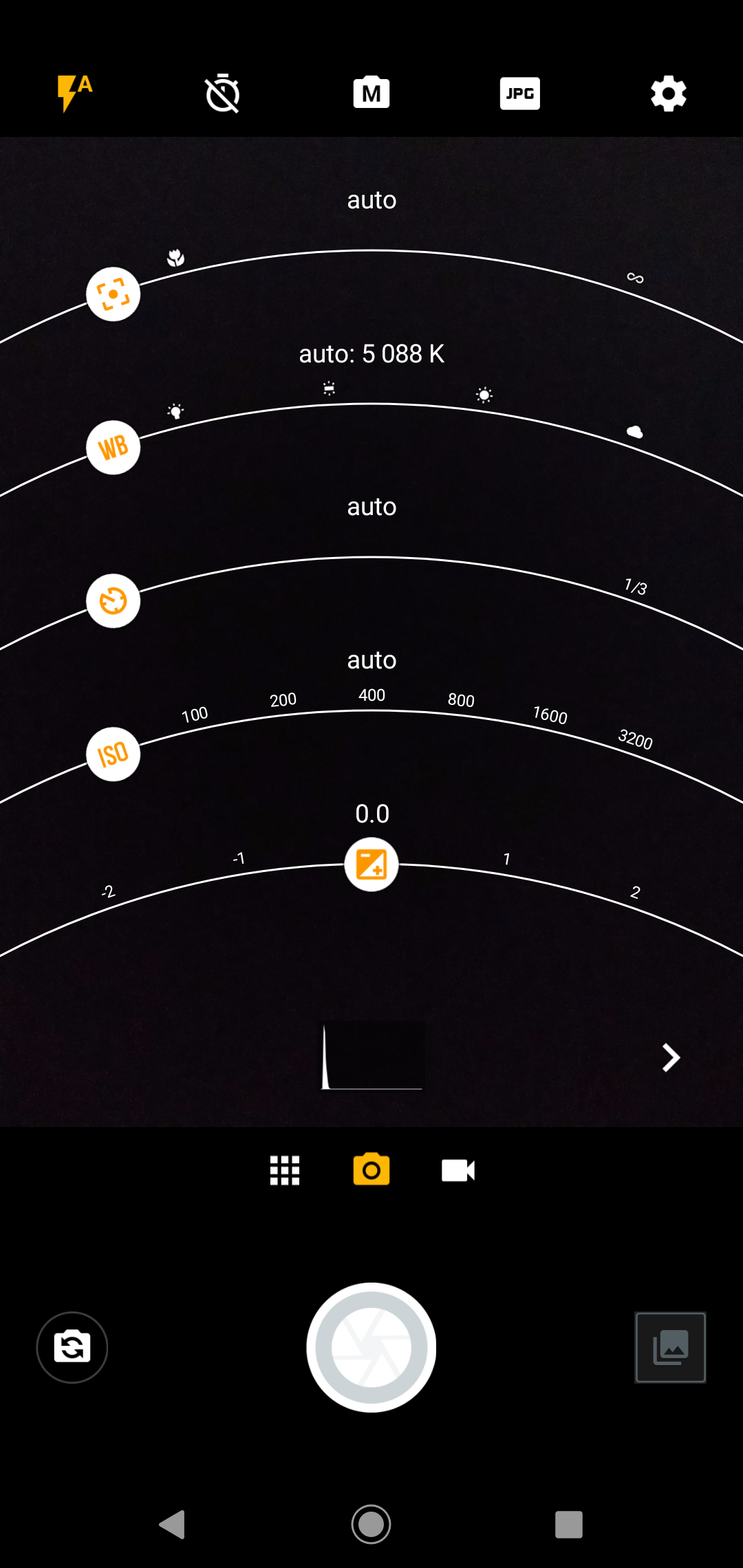Интерфейс управления камерой довольно запутанный, нет единого перечня всех настроек, что-то нужно выискивать под иконками по углам. Впрочем, возможности здесь широкие, в том числе есть ручной режим съемки и сохранение снимков в RAW.