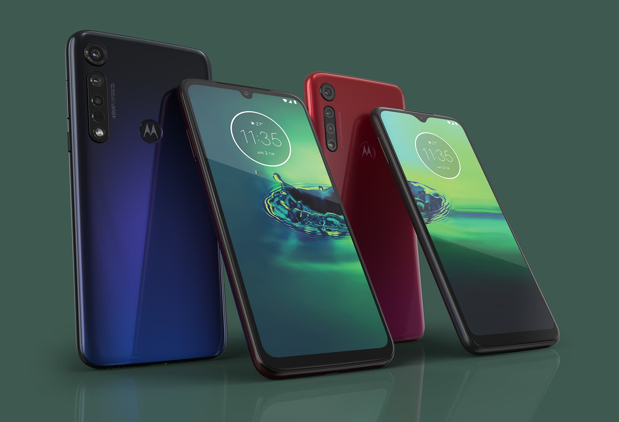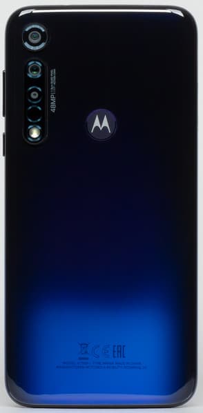 Motorola Moto G8 Plus предлагается в двух вариантах окраса: темно-синем (Cosmic Blue) и темно-красном (Dark Blue, Dark Red), оба имеют градиент. Полноценной защиты от воды нет, хотя упоминается некая защита от брызг, но это скорее маркетинговый ход, чем реальное отличие от любых других незащищенных корпусов смартфонов.