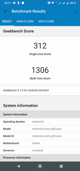 Работает Motorola Moto G8 Plus на программной платформе Google Android 9. Здесь — никаких претензий: чистая ОС Android практически не замусорена дополнительными приложениями (кроме Яндекса), хотя и имеет кое-какие доработки (приложение камеры, например, или поддержка жестов). Плавность работы идеальная, оболочка лаконичная и в целом неплохо оптимизированная.