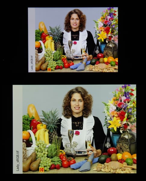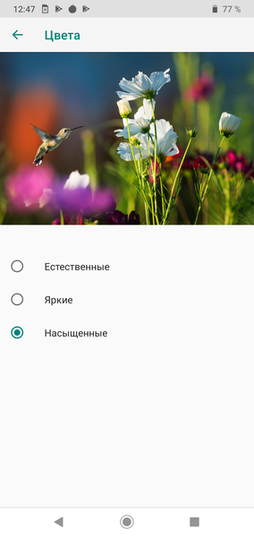 При выборе профилей Яркие и Насыщенные насыщенность цветов последовательно увеличивается за счет небольшого расширения цветового охвата и увеличения цветового контраста: