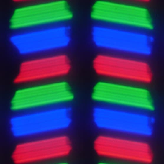 В данном смартфоне используется матрица типа IPS. Микрофотографии демонстрируют типичную для IPS структуру субпикселей: