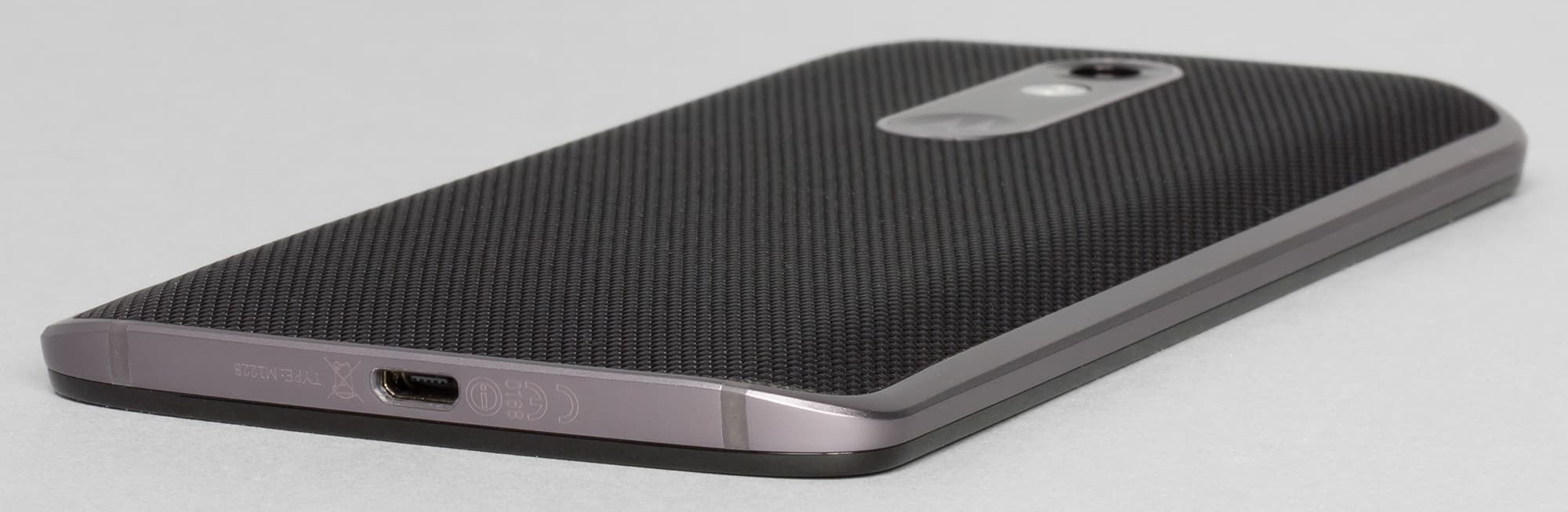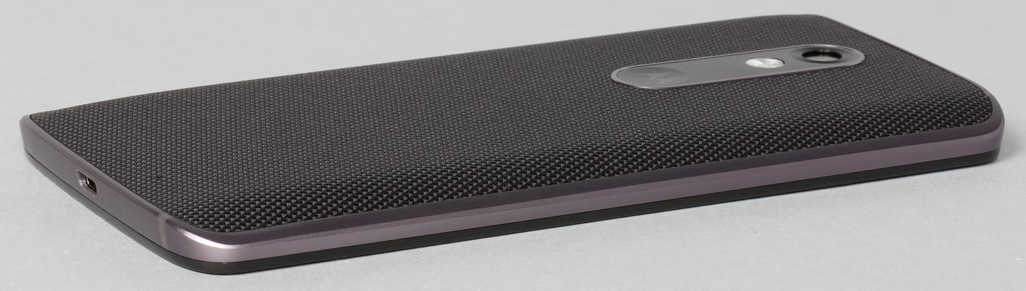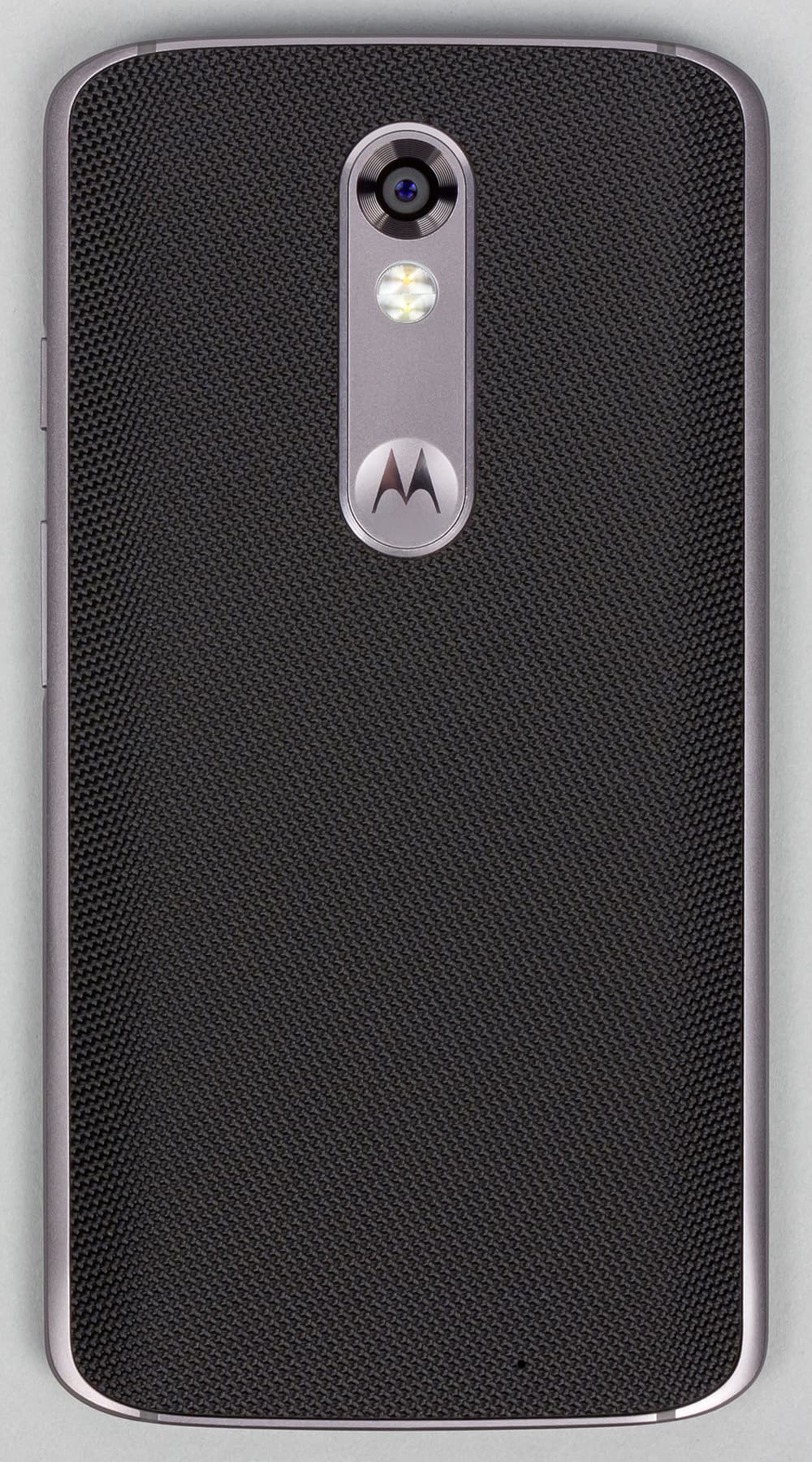 Задняя крышка не менее необычна, чем передняя панель. Этот материал, которым оформлена тыльная сторона корпуса Moto X Force, описан в пресс-релизах менее подробно, но сами создатели именуют его «баллистическим нейлоном». На ощупь это действительно что-то текстильное, сквозь лупу можно даже разглядеть некое мелкое плетеное волокно. То есть тут уж точно не просто текстурированная пластмасса, как бывает, когда пытаются имитировать углепластик (т. н. «карбон»).