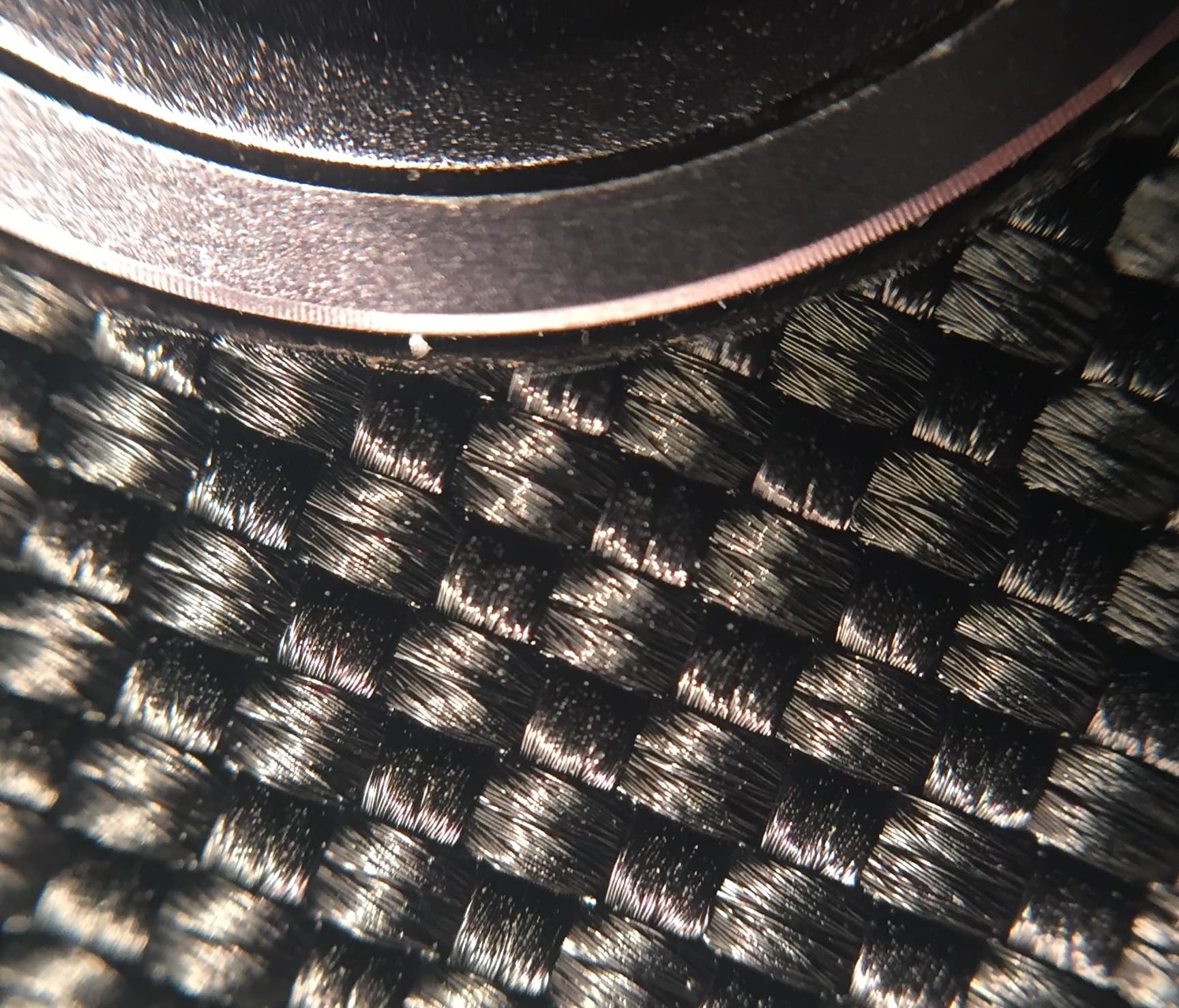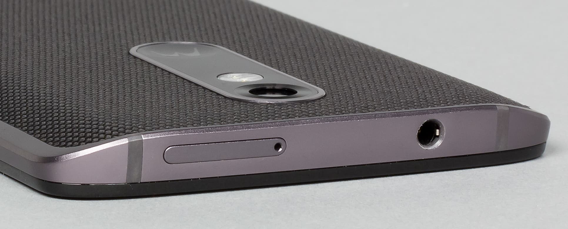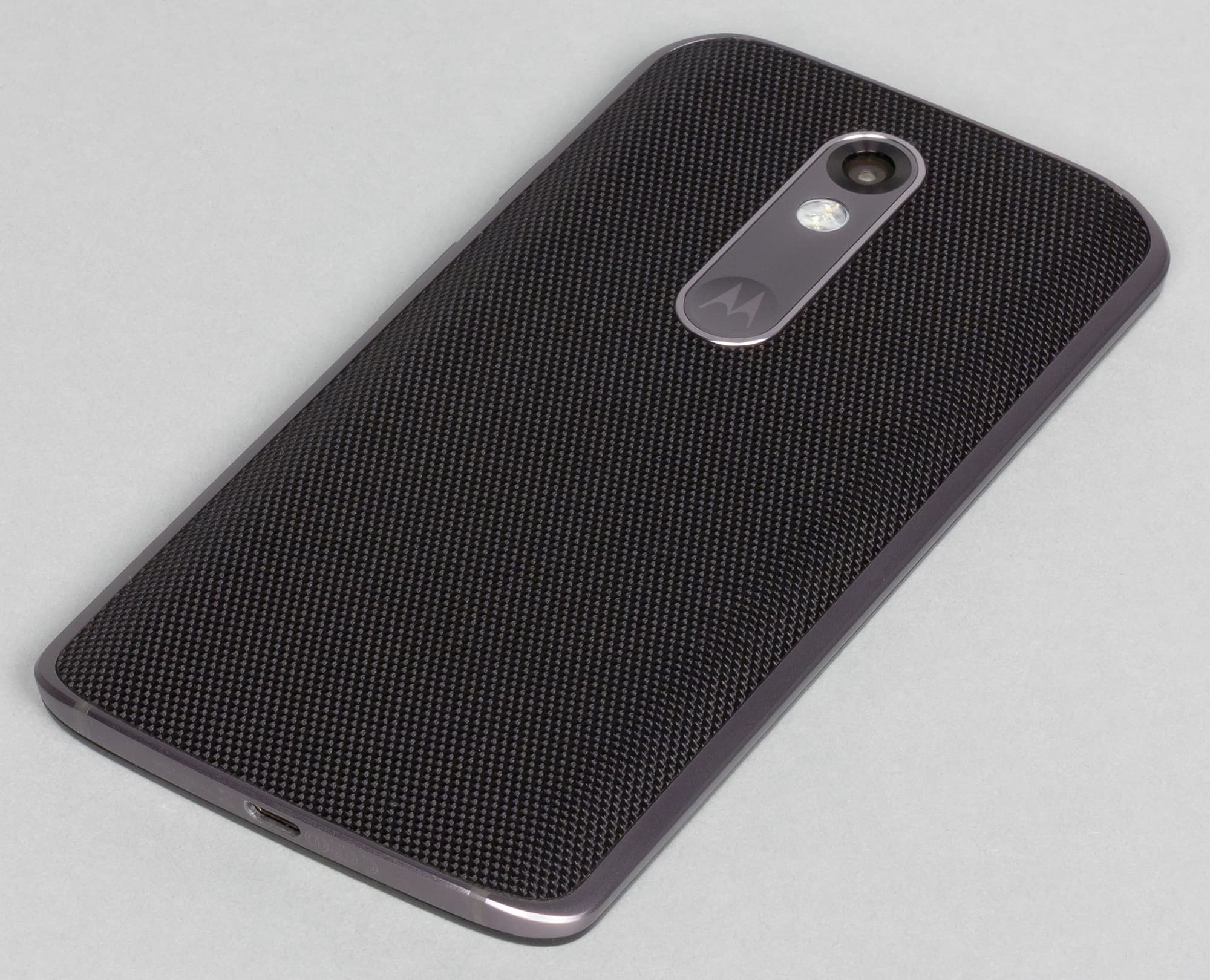 Задняя крышка не менее необычна, чем передняя панель. Этот материал, которым оформлена тыльная сторона корпуса Moto X Force, описан в пресс-релизах менее подробно, но сами создатели именуют его «баллистическим нейлоном». На ощупь это действительно что-то текстильное, сквозь лупу можно даже разглядеть некое мелкое плетеное волокно. То есть тут уж точно не просто текстурированная пластмасса, как бывает, когда пытаются имитировать углепластик (т. н. «карбон»).