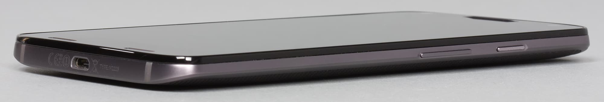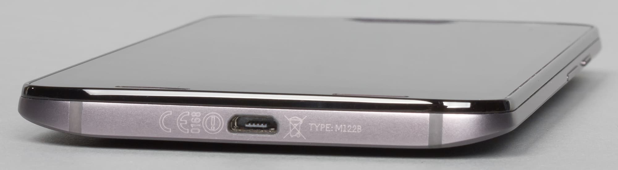 Сенсорных кнопок на передней панели не предусмотрено. В нижней части прямо в защитном стекле прорезаны два симметричных вытянутых отверстия, которые на пару сантиметров отстоят друг от друга. Зачем здесь выпилили два отверстия, а не одно, остается загадкой. Очевидно, собирались таким образом сымитировать наличие стереодинамиков, но их наличие легко опровергнуть, поочередно прикрывая отверстия пальцем: звук выходит лишь из одного отверстия. В любом случае эти две «дырки» спереди смотрятся достаточно нелепо — лучше бы дизайнеры, как и раньше, сделали внизу металлическую вставку, симметричную верхней, это смотрелось бы более органично. Для микрофонов здесь имеются собственные маленькие круглые отверстия, размещенные на тыльной стороне корпуса. Микрофонов в аппарате, кстати, целых пять штук, дополнительные микрофоны служат для работы активного шумоподавления.