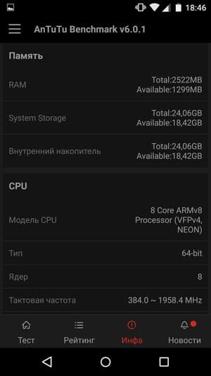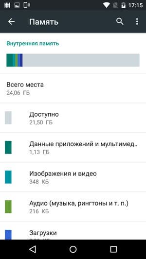 Объем оперативной памяти (LPDDR4) смартфона составляет 3 ГБ. Объем встроенной памяти можно выбрать между 32 и 64 ГБ. В случае с версией на 32 ГБ пользователю остается около 21,5 ГБ свободного пространства. Этот объем можно увеличить за счет карт microSD, также есть возможность подключения к порту USB внешних флэш-накопителей в режиме OTG. Карты microSD поддерживаются емкостью до 2 ТБ, на практике наша проверочная карта Transcend Premium microSDXC UHS-1 объемом 128 ГБ уверенно распозналась устройством.