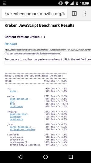 Что касается бенчмарков для оценки скорости движка javascript, то стоит всегда делать скидку на то, что в них результаты существенно зависят от браузера, в котором запускаются, так что сравнение может быть истинно корректным только на одинаковых ОС и браузерах, а такая возможность имеется при тестировании не всегда. В случае с ОС Android мы всегда стараемся использовать Google Chrome.