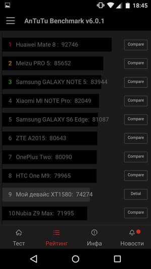 По результатам тестирований смартфон на Qualcomm Snapdragon 810 ожидаемо продемонстрировал высокий, но не рекордный уровень производительности, для рекордов имеются более мощные конкуренты.