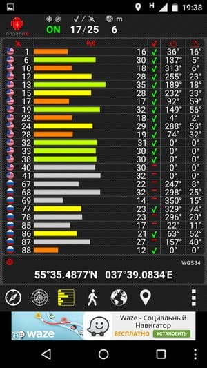 Навигационный модуль работает с GPS (А-GPS) и Глонасс. К скорости работы навигационного модуля претензий нет, первые спутники обнаруживаются при холодном старте в течение первых десятков секунд. Смартфон оборудован сенсором магнитного поля, на основе которого функционирует компас навигационных программ.