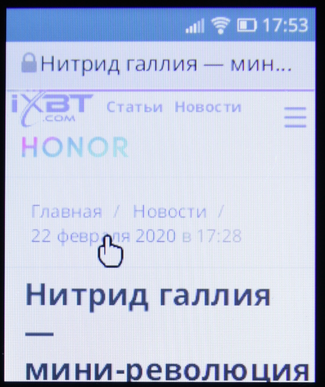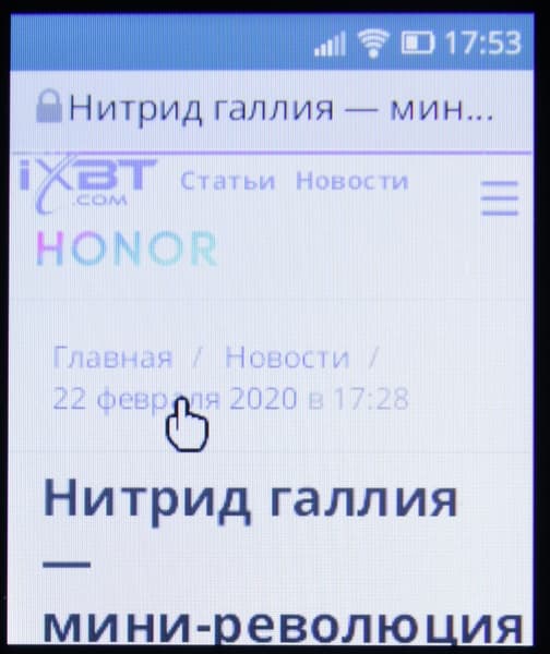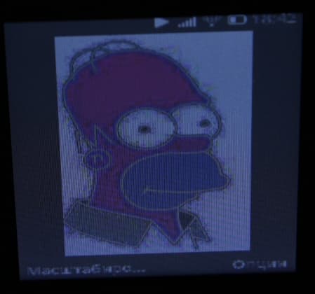 Используемая в экране матрица типа TN обуславливает следующие неприятные свойства: даже при небольшом отклонении вверх от перпендикуляра к экрану инвертируются темные оттенки, при отклонении вниз — светлые. Также при самом малом отклонении вверх или вниз очень сильно высветляется черное поле. Более-менее стабильной картинка остается только при отклонении вправо-влево, но все равно из-за сильно меняющейся картинки даже при небольших движениях телефоном смотреть на экран неприятно.
