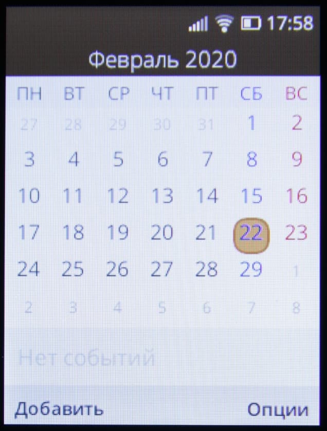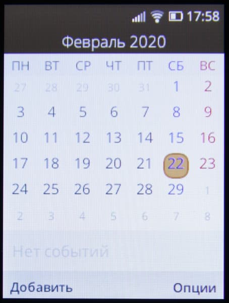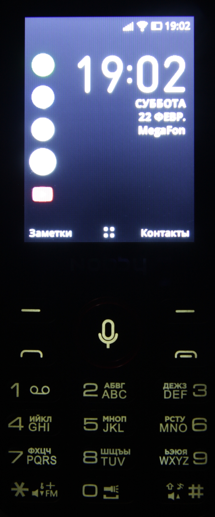 Поверхности кнопок практически не бликуют, обозначения контрастные и достаточно крупные. Русские буквы, конечно, все равно мелковаты, но с этим уже ничего не поделаешь. На ощупь ориентироваться в кнопках помогает едва ощущаемая выпуклость на кнопке 5, а в темноте использование телефона облегчает достаточно яркая (когда нужно ярче — кнопки уже и так видно) и равномерная подсветка, которая белым подсвечивает все белые обозначения на кнопках.