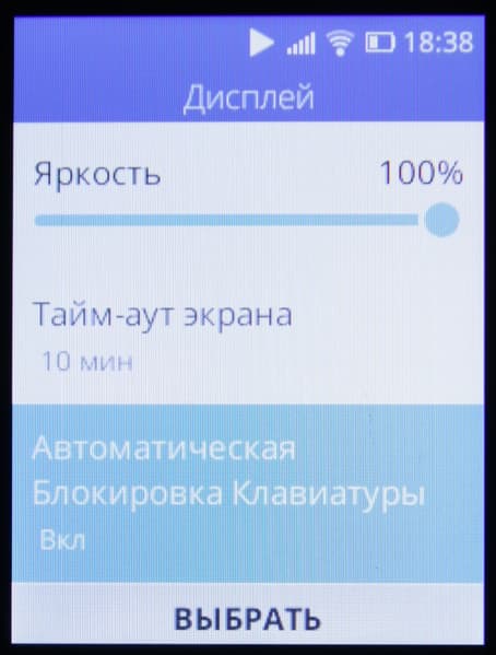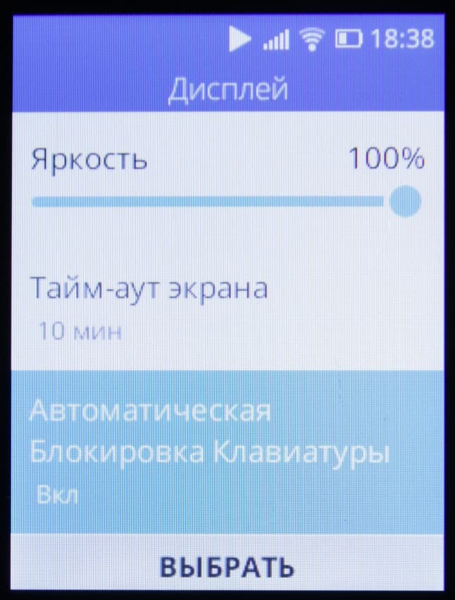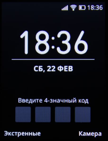 Рассмотрим непосредственно связанную с клавиатурой функцию блокировки. Для блокирования клавиатуры нужно удерживать кнопку *, разблокировка выполняется тем же действием. Также блокировку можно включить в меню выключения. В меню настроек можно установить тайм-аут бездействия со стороны пользователя, по истечении которого подсветка экрана автоматически гасится. Отдельно можно выбрать, блокировать ли при этом клавиатуру или нет. Эти действия между собой почему-то не связаны, что не очень удобно, так как нельзя принудительно погасить экран одновременно с блокировкой клавиатуры. Так как кнопка * находится с краю, то есть вероятность ее случайного нажатия, например, в заднем кармане джинсов (хотя мы с этим не сталкивались). Для предотвращения этого можно включить защиту с помощью 4-значного пин-кода, что уже точно должно исключить самовольное поведение телефона.
