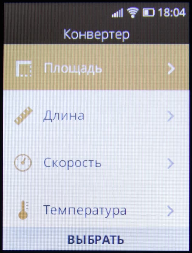 Конвертер — пересчет из одних единиц в другие (площадь, длина, скорость, температура, объем, вес).