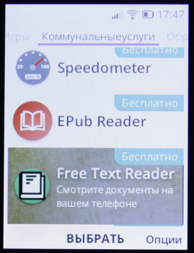 Отметим, что в принципе система KaiOS предусматривает установку пользовательских приложений, но, видимо, разработчики этого телефона ограничили доступ к файловой системе. В итоге на телефоне можно включить режим отладки и подключить его через adb к ПК, но на этом все, дальше этого шага несколько доступных инструкций по установке стороннего ПО уже не работают. Остается Магазин приложений. Выбор в нем небольшой, но можно, например, установить программу для чтения электронных книг.