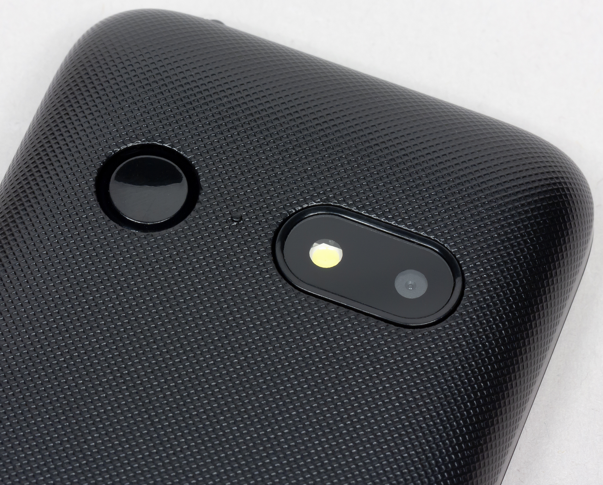 На задней крышке есть микрорельеф, что делает телефон менее скользким и снижает заметность мелких повреждений. На верхнем торце находится светодиод фонарика.