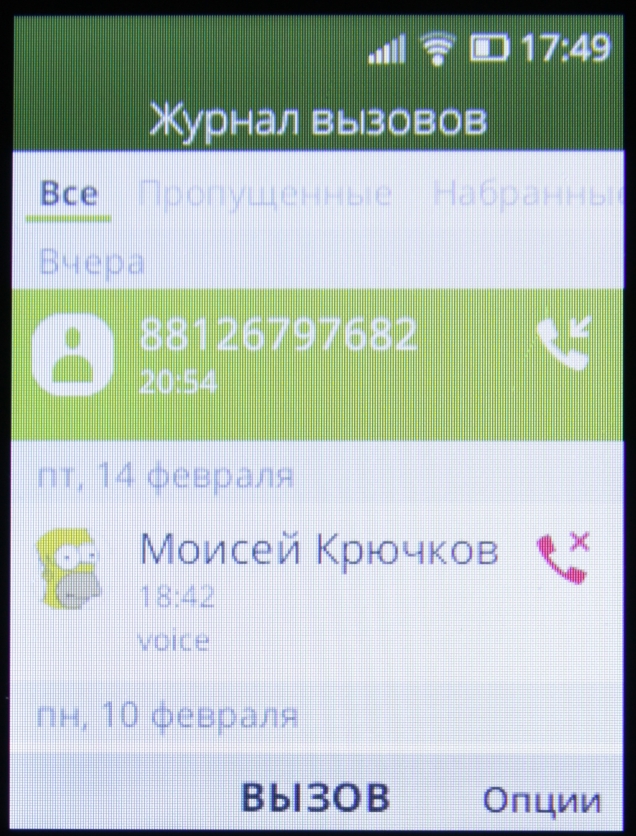 Журнал вызовов — список всех вызовов, только пропущенных, только исходящих, только входящих.