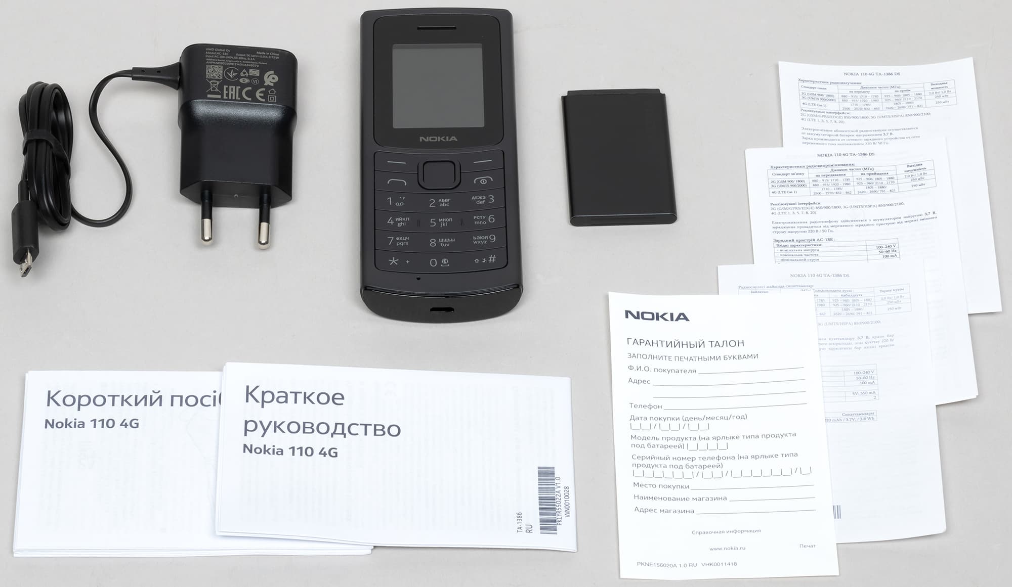 - Гарантийный талон (телефон — 1 год, ЗУ и аккумулятор — 6 месяцев)