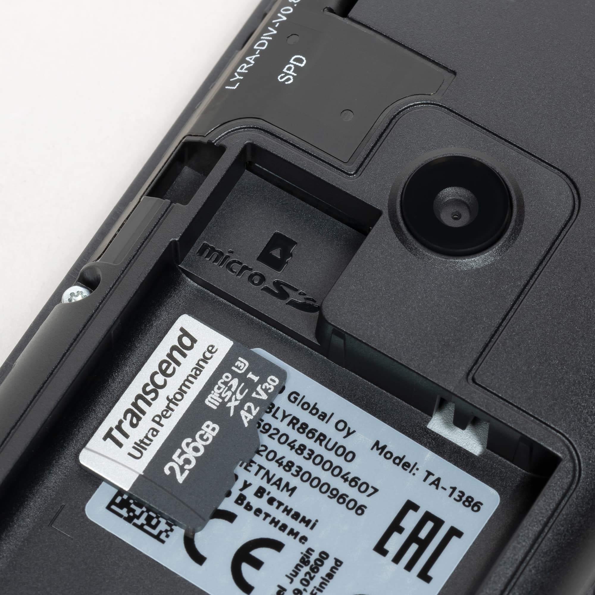 Карточку microSD нужно просто подсовывать в щель в торце ниши.