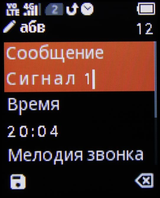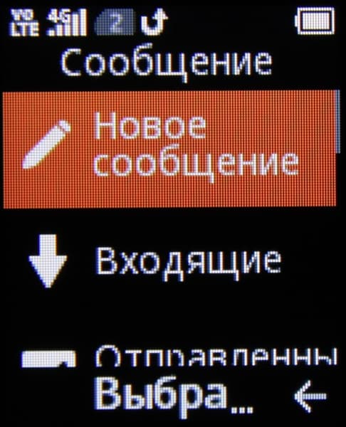 Сообщение — работа с SMS-сообщениями. Относительно удобная работа со списком сообщений, но редактор примитивный: вставка текста не поддерживается, только номера из списка контактов. Переключения языка ввода нет — при нажатии на кнопку сначала перебираются символы первого языка, затем вводится цифра, потом перебираются символы второго языка. Так неудобно, но это во всех текстовых полях. Есть возможность создавать списки рассылки.
