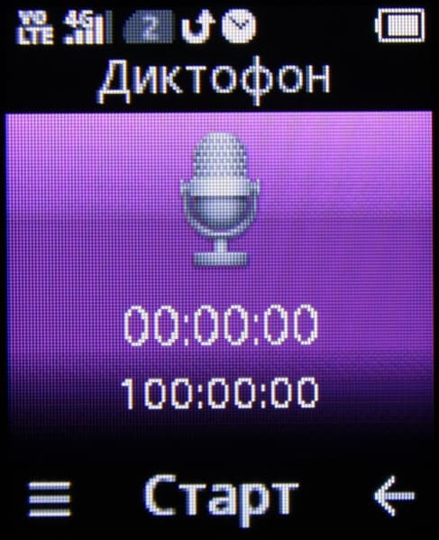 Диктофон — можно выбирать из трех форматов для записи — AMR, MP3 или WAV.
