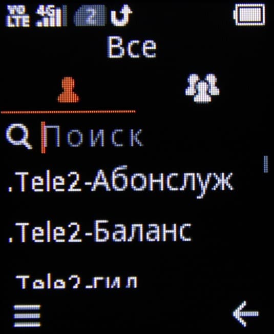 Контакты — список всех контактов и контактов на SIM1/2 и по группам — Семья, Друзья, Работа и Одноклассники. Везде можно искать по номеру или по имени. На контакт можно установить значок (почти бесполезно, так как при вызове он отображается крохотным), имя (30 символов, если латинскими, и всего 15, если кириллицей), два номера — мобильный и домашний, а также можно отнести контакт к одной из четырех групп.