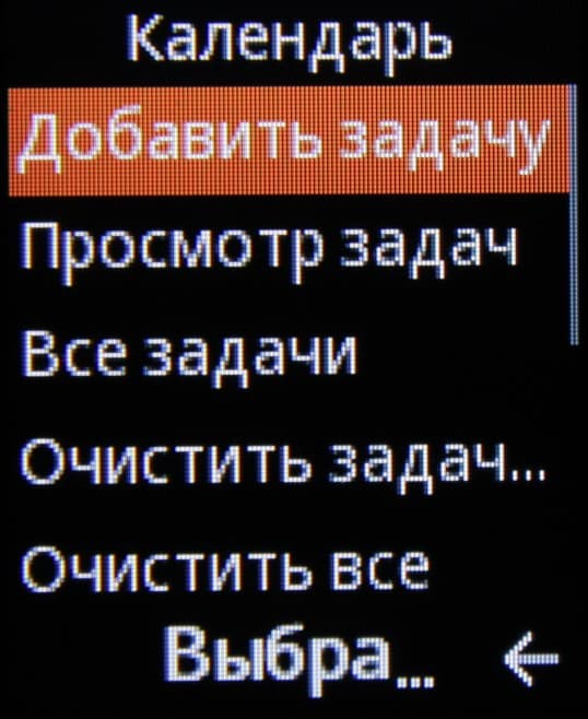 Функции кнопок в программах более-менее понятны: кнопка Отбой — отмена и выход сразу на главный экран; правая кнопка возврат на уровень назад или удалить символ, левая кнопка — вызов контекстного меню, ввод — выбор текущего пункта или, например, тоже вызов контекстного меню, навигационная кнопка-джойстик — перемещение фокуса ввода и/или курсора. Отметим, что списки в меню зациклены, что облегчает навигацию.