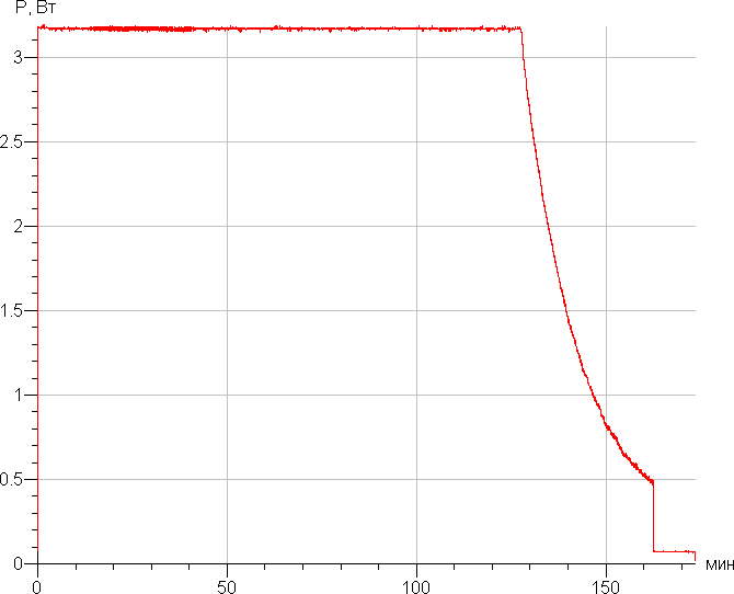 Разъем для зарядки и связи с ПК, к сожалению, Micro-USB. Полностью заряжается телефон током до порядка 0,5 А максимум где-то за 2 часа 40 минут, при этом фаза СС занимает немногим больше 2 часов, после нее ток заряда плавно спадает. График потребления от сети при зарядке комплектным ЗУ: