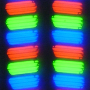 В данном смартфоне используется матрица типа IPS. Микрофотографии демонстрируют типичную для IPS структуру субпикселей: